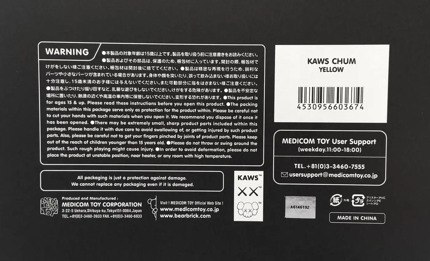 To mark the 20th anniversary of the iconic CHUM character, KAWS releases a reissue of the classic vinyl figure originally introduced in 2002. The yellow version is presented as an open edition, clearly distinguishing it from the original release, which was limited to 500 pieces.