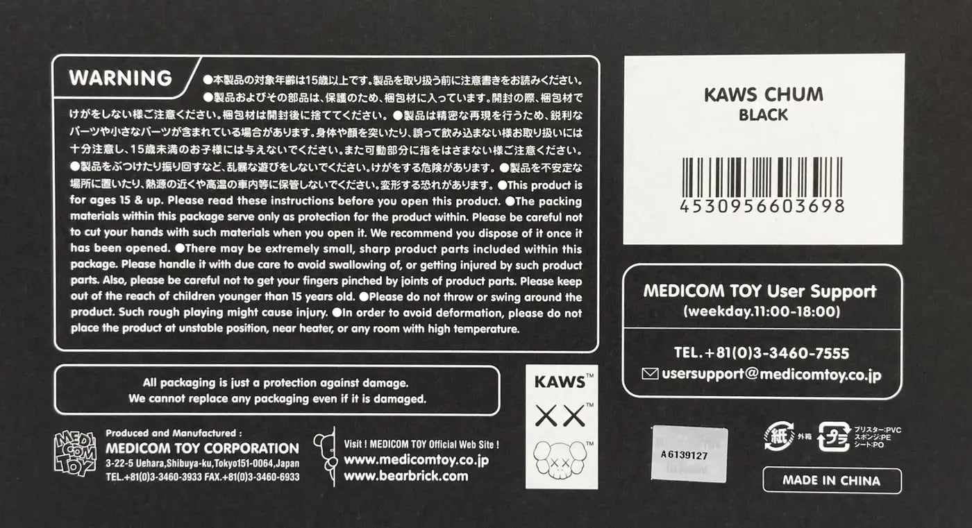 To mark the 20th anniversary of the iconic CHUM character, KAWS releases a reissue of the classic vinyl figure originally introduced in 2002. The black version is presented as an open edition, clearly distinguishing it from the original release, which was limited to 500 pieces.