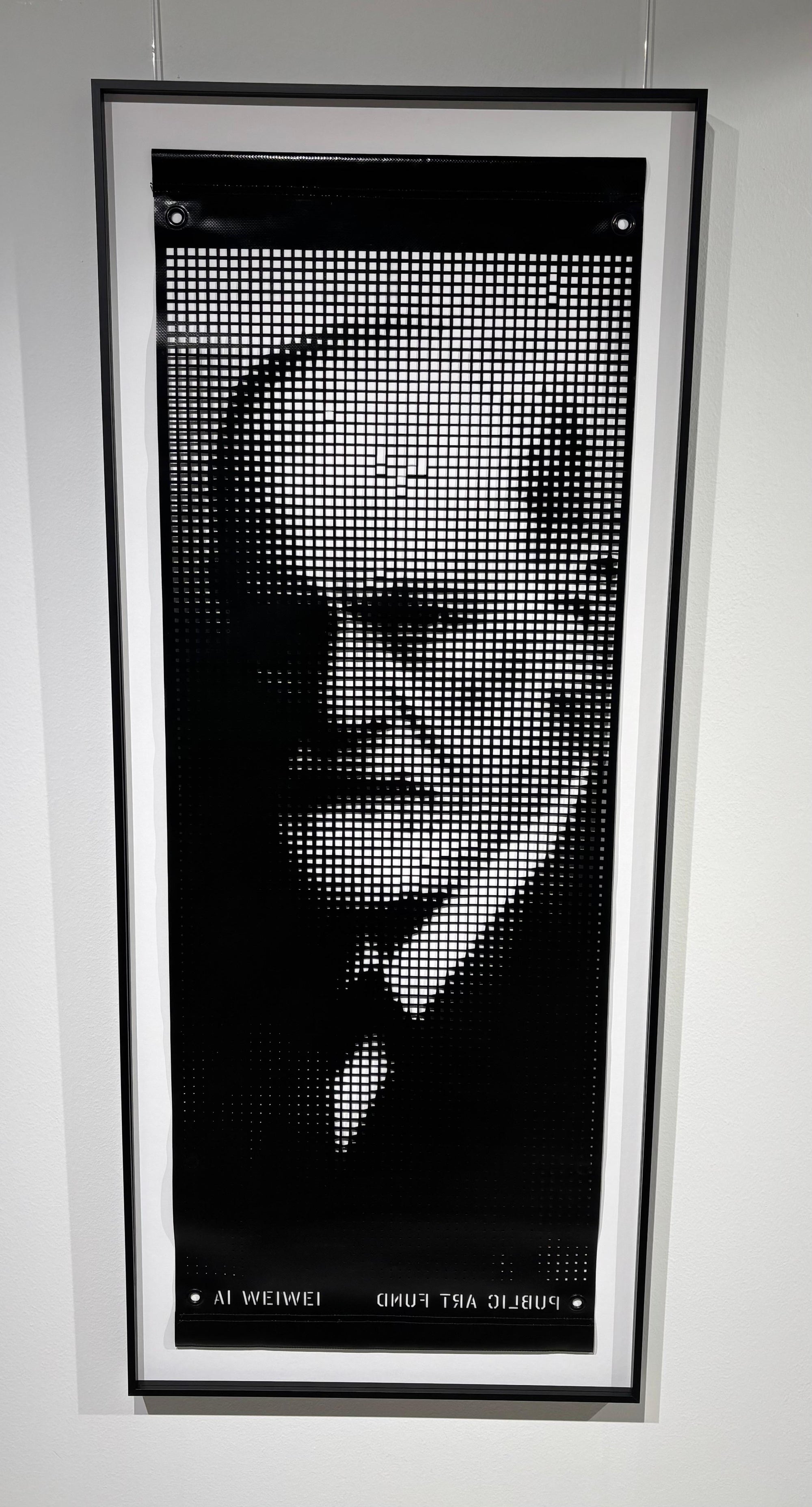 Das Banner zeigt ein Porträt von Sigmund Freud in einem perforierten Raster, das politischen Kommentar mit kultureller Referenz verbindet. Durch Freud thematisiert Ai Weiwei Identität, Migration und Menschenrechte im Kontext der menschlichen Psyche.