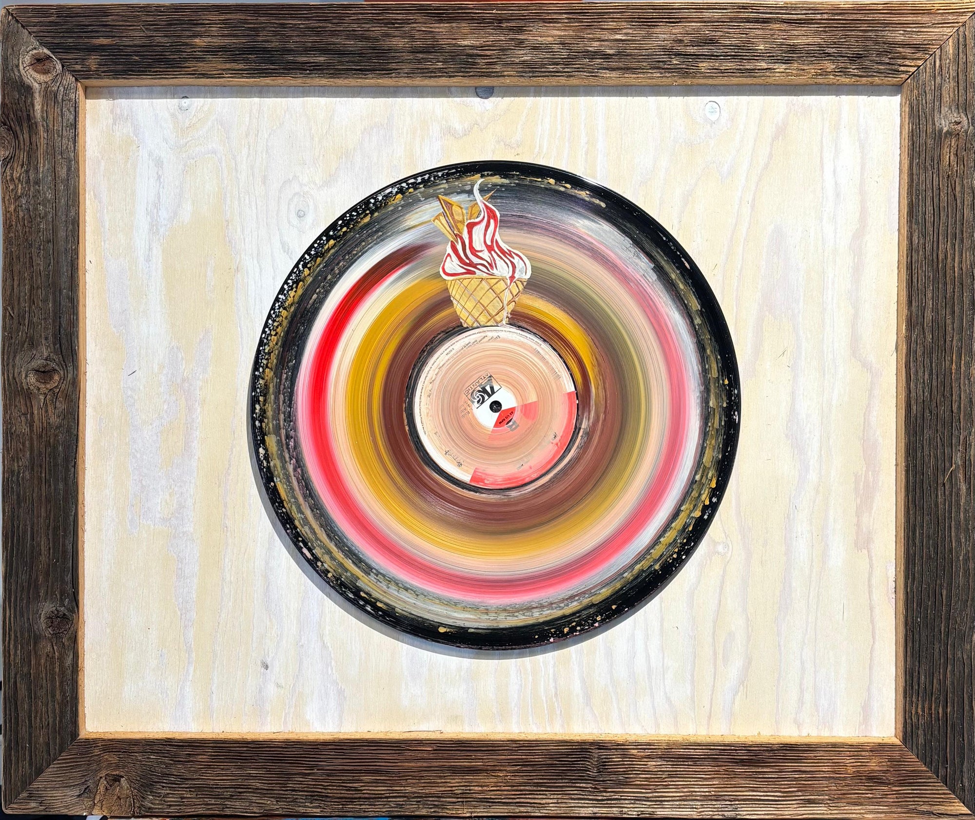 Beim Experimentieren mit drehenden Schallplatten, um abstrakte Hintergründe zu malen, kam die Inspiration - daraus entstand The Cream. Der Name passte perfekt: teils Anspielung auf Eiscreme, teils Hommage an die legendäre Band Cream, deren Musik sicher laut lief, während das Werk entstand.